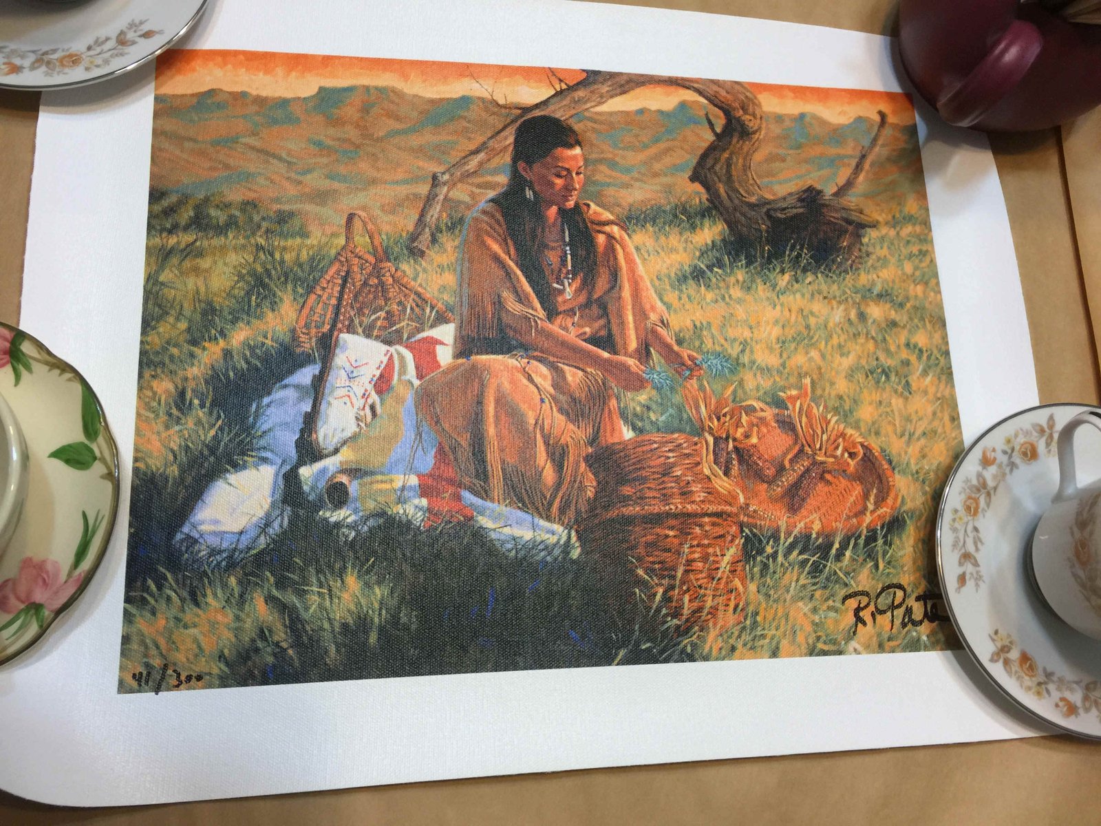 Native American Basket weaver Original print signed and numbered R. Pate Basket Weaver 34 Ty Wilson Ballerina Caribbean possibly CURACAO original paintings collected in