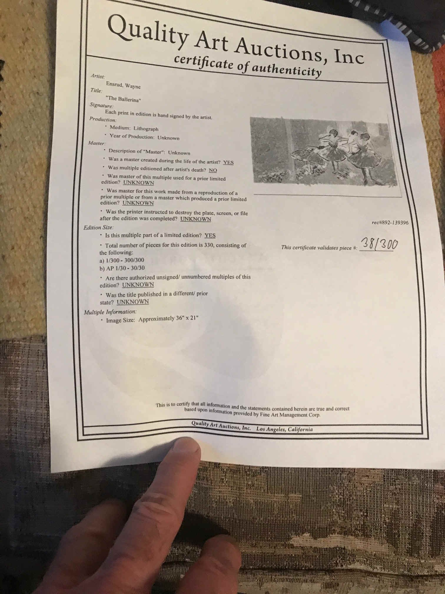 Ballerina by Wayne Ensrud. And Lithographs, posters, signed
